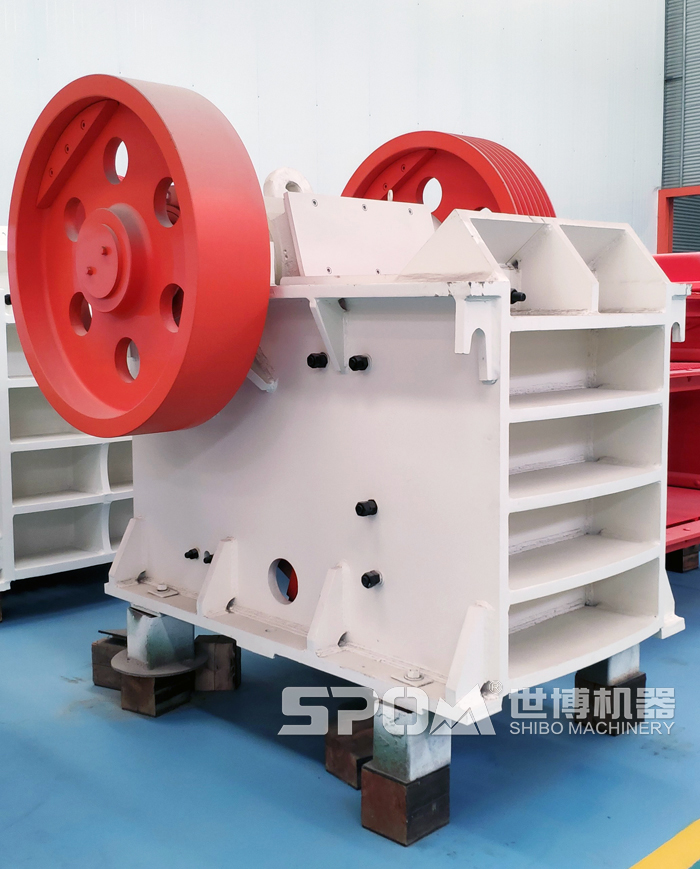 4、轴承座固定方式不同 普通颚破的轴承座与机架是焊接在一起的,相对寿命短。而欧版颚破的轴承座采用整体铸钢结构,大大增强轴承座的径向强度,延长使用寿命。