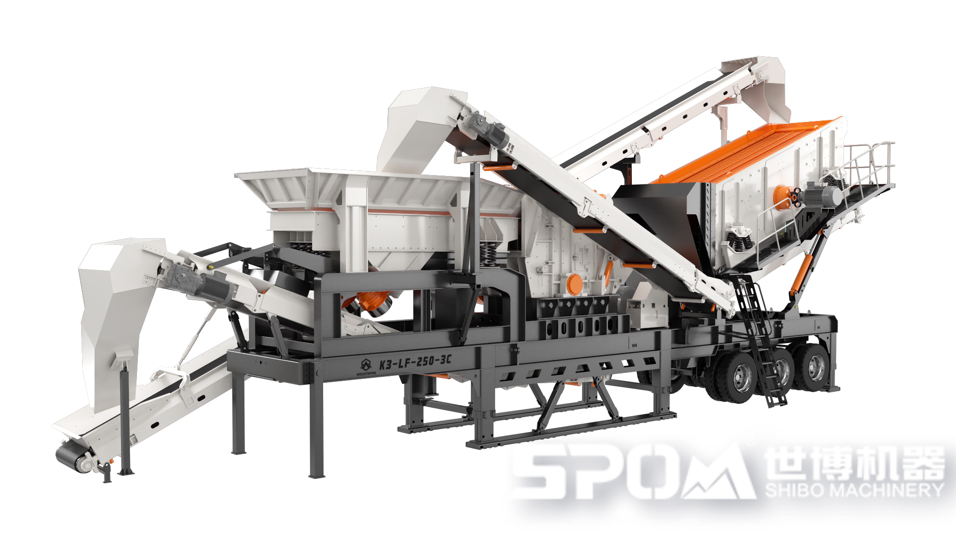 世博K3移动站采用一体化机组设备安装形式,消除了分体组件的繁杂场地基础设施安装作业,配置履靴和车载皮带机,运输转场时自动收起,到现场展开后,即刻进入作业模式,节省了大量的人力和时间,同时布局紧凑,对作业环境适应性强,生产效率高,能快速完成作业需求。K3移动站组合灵活,可以独立使用,也可以针对客户对流程中的物料类型、产品要求,提供更加灵活的工艺配置,满足用户移动破碎、移动筛分等各种要求,使生成组织、物流转运更加直接有效,成本达到最大化的降低。新型生产工艺,生产过程中设备震动小,噪音低,多重密封防尘,可配接料出料防尘罩,能有效减少粉尘外溢问题,清洁环保,符合国家环保要求。实现建筑垃圾的再生利用,发掘建筑垃圾的巨大潜力,提高建筑垃圾资源化利用率对实现城市绿色可持续发展有着重要意义,也对保护生态环境,保护绿水青山有着深远的影响。